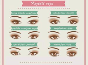 Pęseta przyłożona do skrzydełka nosa i poprowadzona przez środek źrenicy, wskaże miejsce wygięcia łuku brwiowego. Powinien on leżeć na prawo od źrenicy. Punkt ten zaznaczyć kredką do oczu, następnie usunąć rosnące poniżej włoski. Starać się również, aby część brwi na prawo od łuku brwiowego była odrobinę cieńsza i zwężała się powoli w kierunku zewnętrznego kącika oka.