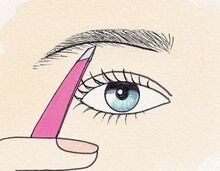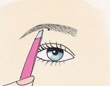 Rozpoczynając od najszerszej części brwi, narysować kredką do oczu linię biegnącą wzdłuż jej dolnej krawędzi. Powinna się ona znajdować powyżej pojedynczych włosków i biec równolegle do górnej krawędzi. Ta z kolei powinna być wygięta, lekko zaokrąglona a czasem nawet prosta – w zależności od kształtu twarzy. Wyrwać włoski znajdujące się pod tą linią. Ostatecznie brwi powinny mieć od ok. 0,5 do 1 cm szerokości w najgrubszym miejscu.