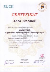- Od 2019 roku prowadzenie własnego gabinetu kosmetologiczno – podologicznego pod szyldem „GABINET PIĘKNA”