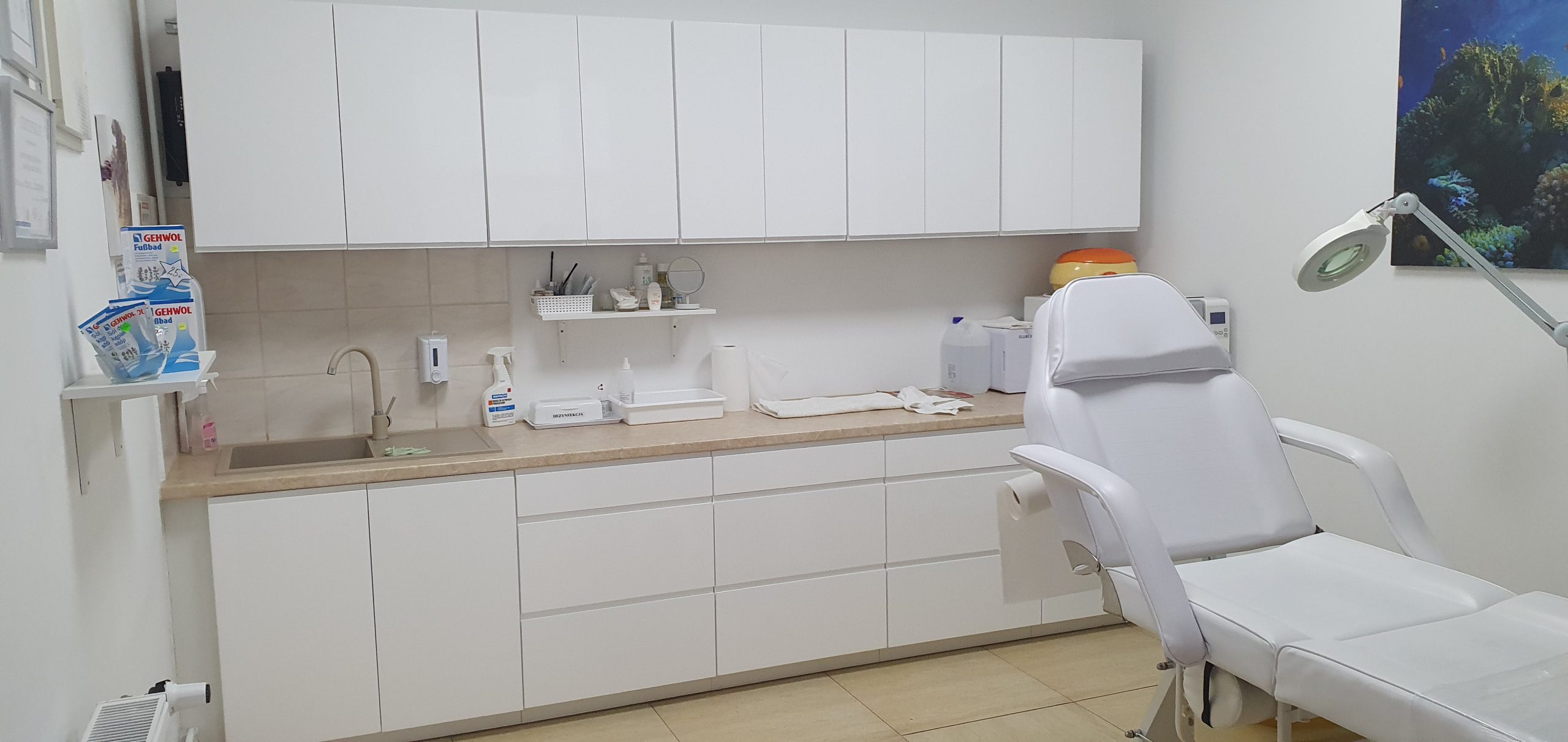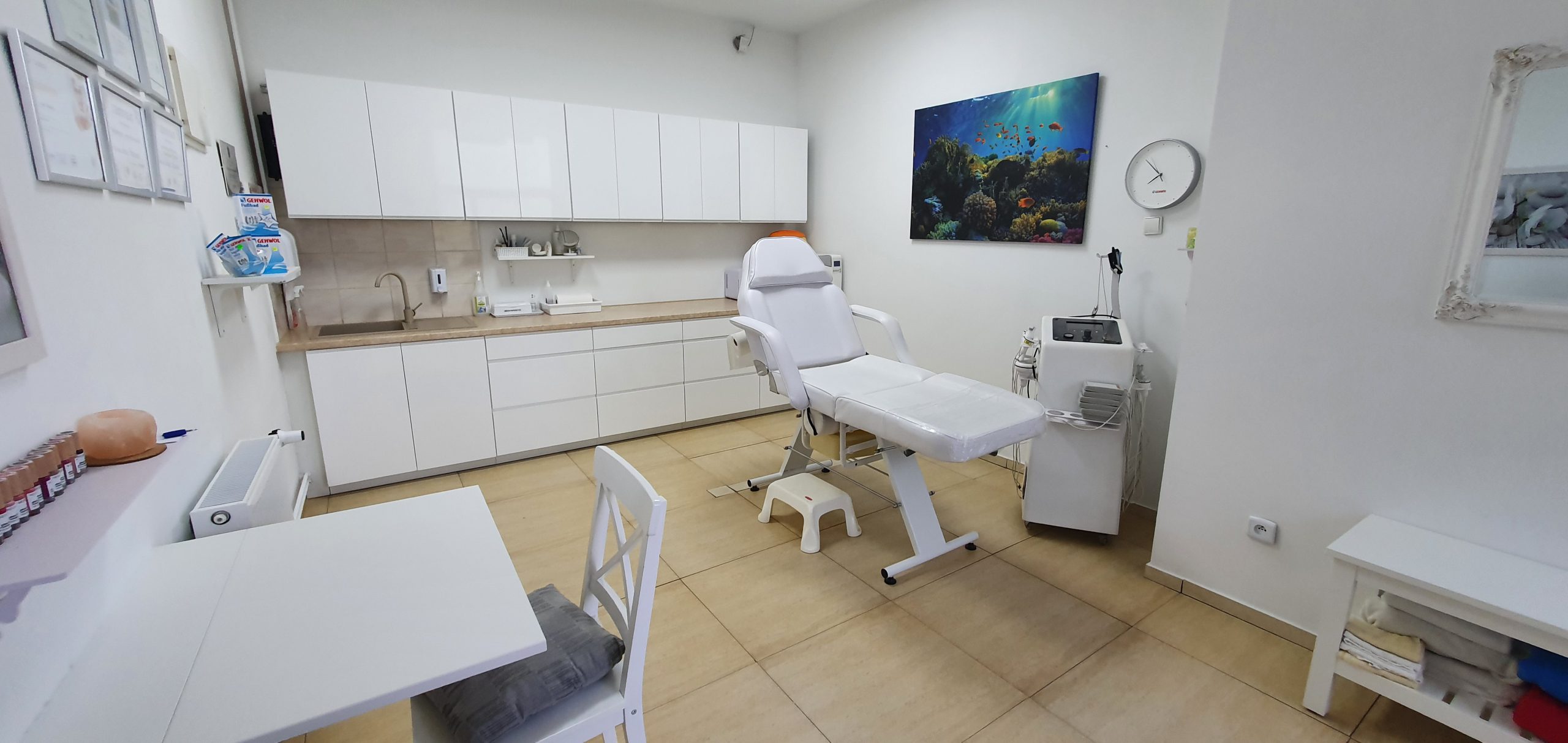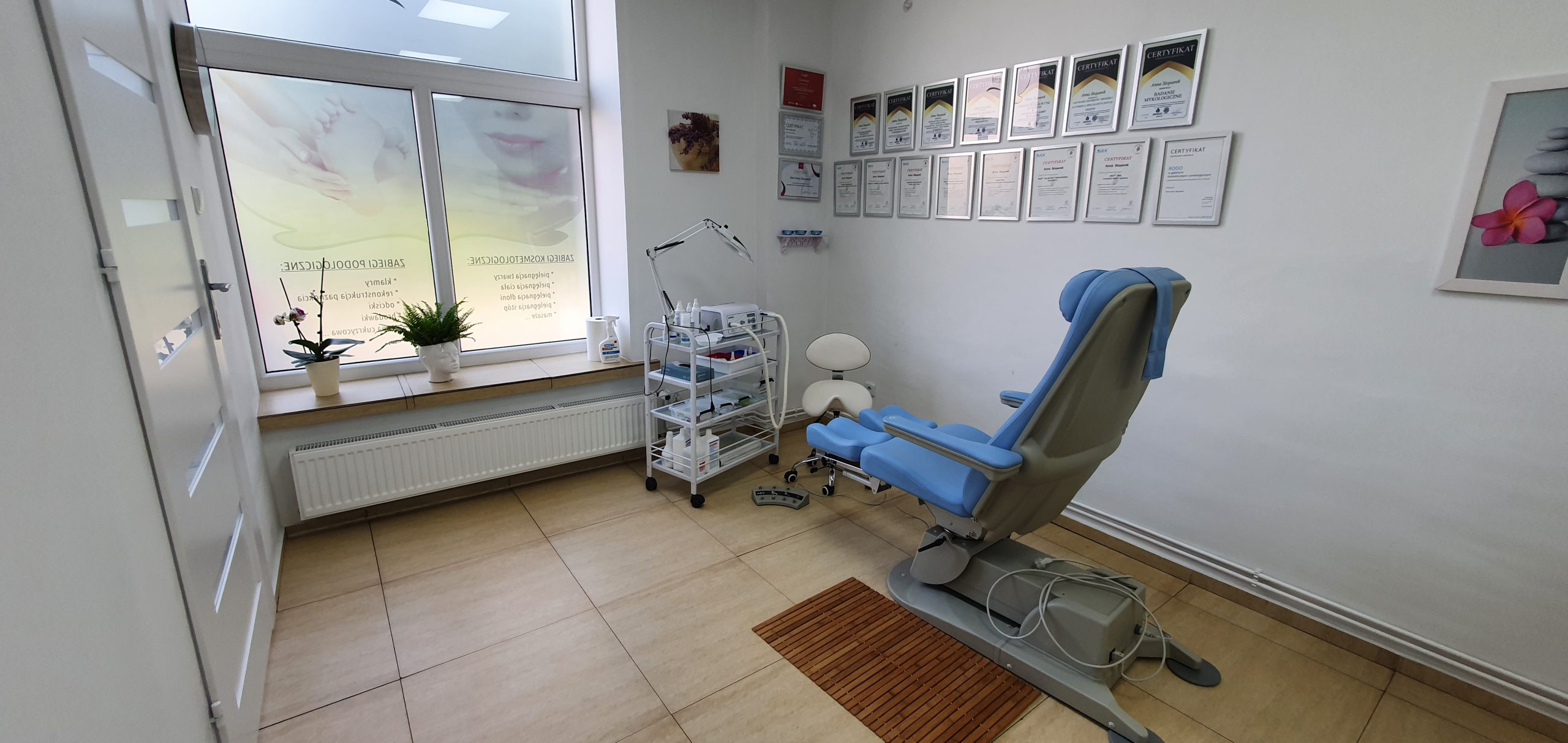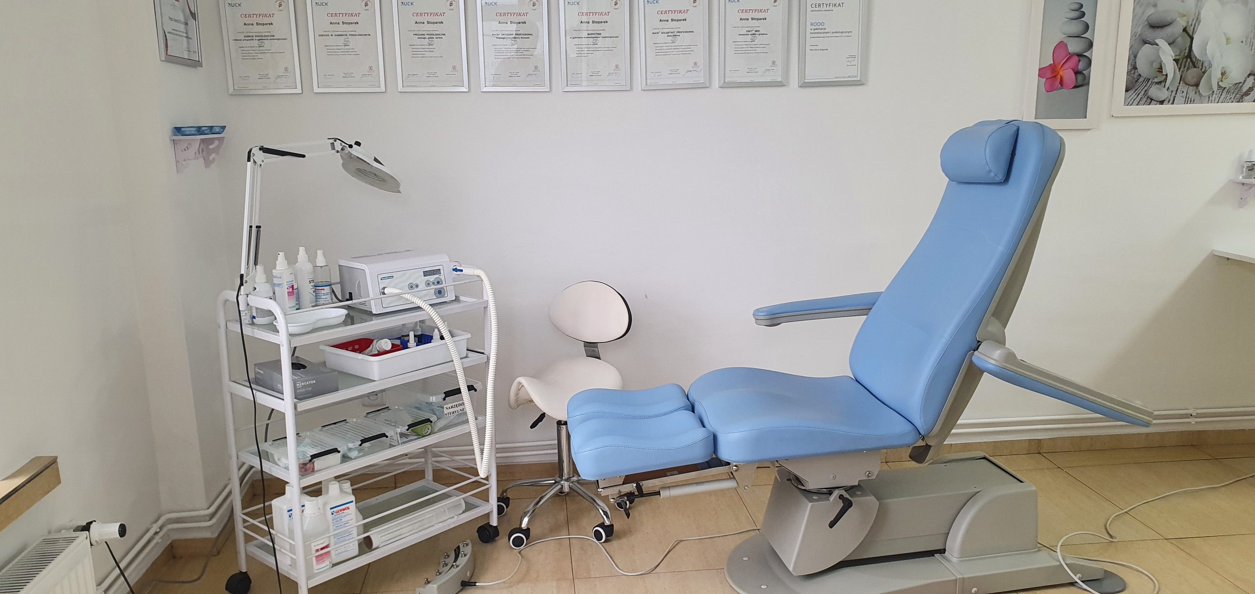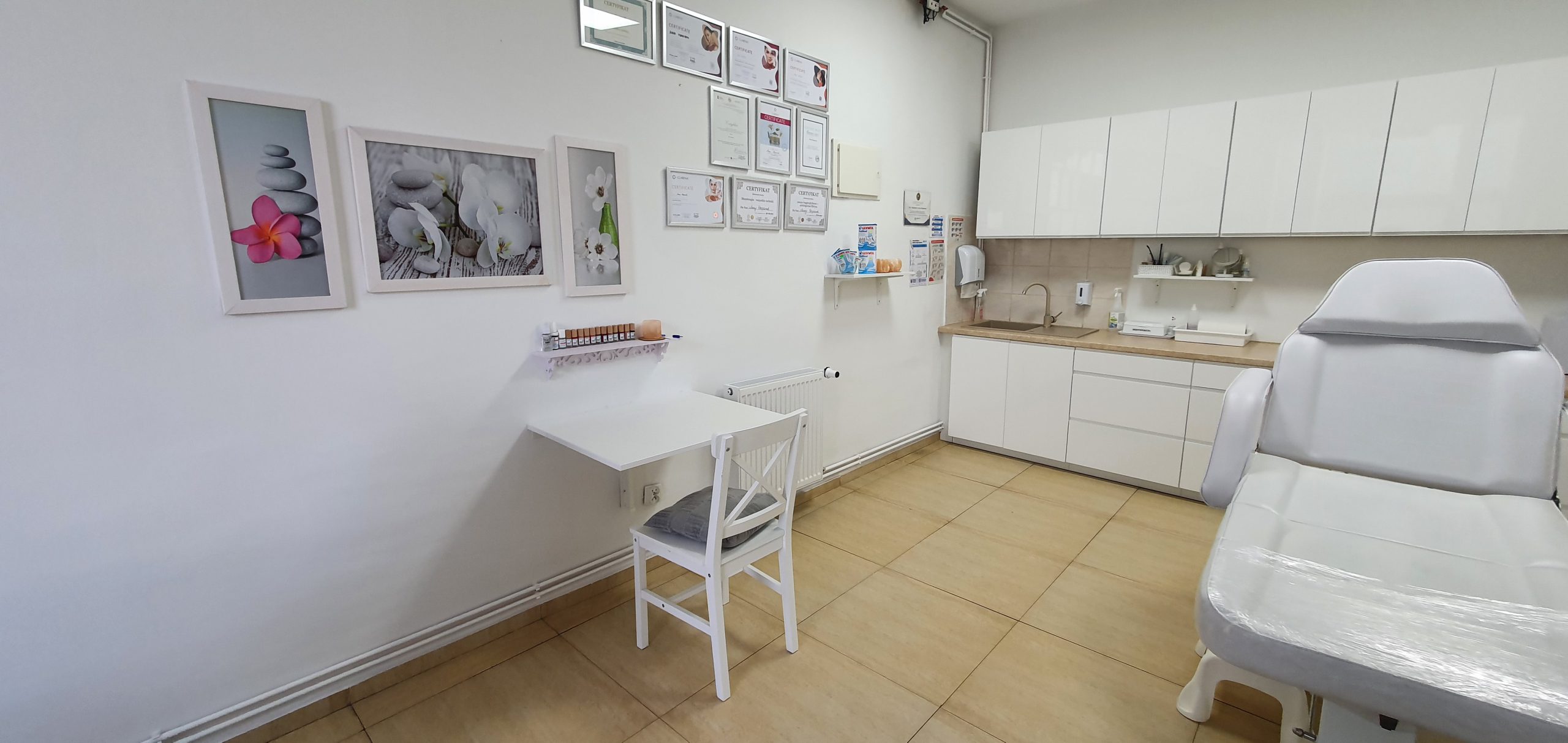 Dodatkowo pomieszczenie zabiegowe sterylizowane jest przy pomocy lampy bakteriobójczej UV