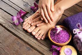 kąpiel stóp z solą lub aromatycznym olejkiem lub ziołami, która może zostać połączona z hydromasażem,